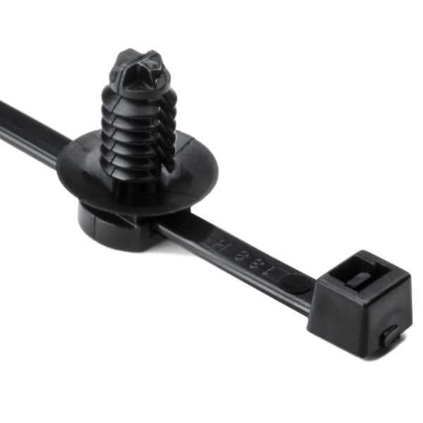 HellermannTyton 156-00291 Cable Tie Mounts 2-Piece Cable Tie with Fir Tree Mount, 8.0"L, 0.26 - 0.28" Mounting Hole, 50lb, PA66HS, Black, 100/pkg