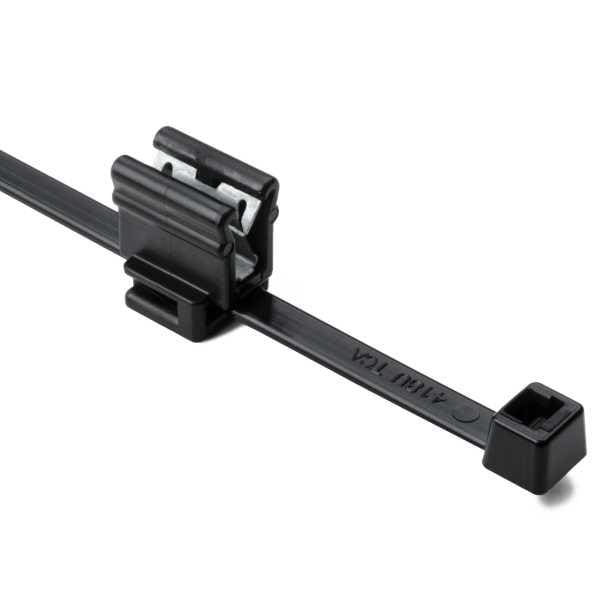 HellermannTyton 156-02228 Serrated, Inside 2-Piece Cable Tie & Edge Clip, 8.0" Long, EC4B, 13 mm Panel, 50lb, PA66HIRHSUV/PA66HIRHSUVR5, Bk, 100/pkg