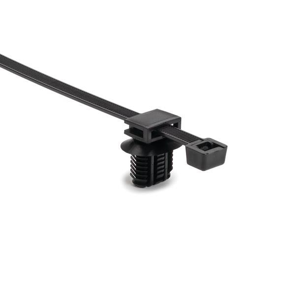 HellermannTyton 156-03096 Cable Ties with Mounts 2-Pc Cable Tie/Fir Tree Mount, Unassembled Set, 15"L, 9x17mm Hole, PA66HIRHSUV, Black, 2000/ctn