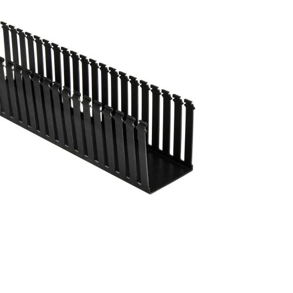 HellermannTyton 181-45002 Slotted Wall Wiring Duct Slotted Wall Wiring Duct, 4" x 5", Non-Adhesive, PVC, Black, 60ft/Carton | EMINKH.COM