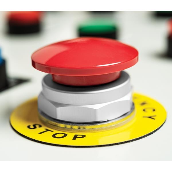 HellermannTyton 596-00202 Nameplate Label Foam Nameplate, 2.38" x 2.38" Emergency Stop label, PET, Yellow, 100/roll | EMINKH.COM