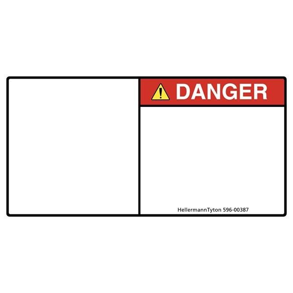 HellermannTyton 596-00387 Labels Pre-Printed Header Label, DANGER, Blank Symbol Panel, 1.35" x 2.75", PET, Red, 250/roll | EMINKH.COM