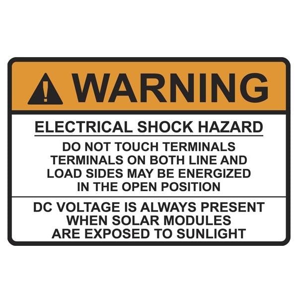 HellermannTyton 596-00496 Solar Label Solar Label, WARNING ELECTRICAL SHOCK HAZARDDC VOLTAGE, 3.75" x 2.5", VL, Orange/White, 50/roll | EMINKH.COM
