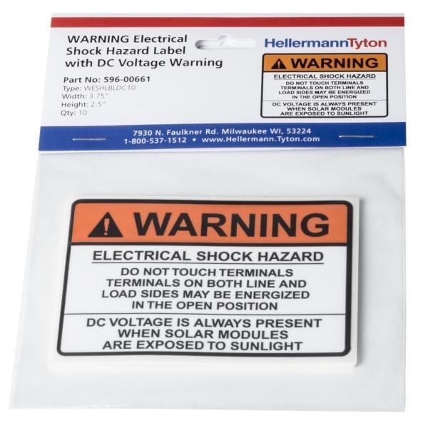 HellermannTyton 596-00661 Solar Label Solar Label, WARNING ELECTRICAL SHOCK HAZARDDC VOLTAGE, 3.75" x 2.5", VL, Orange, 10/pkg | EMINKH.COM