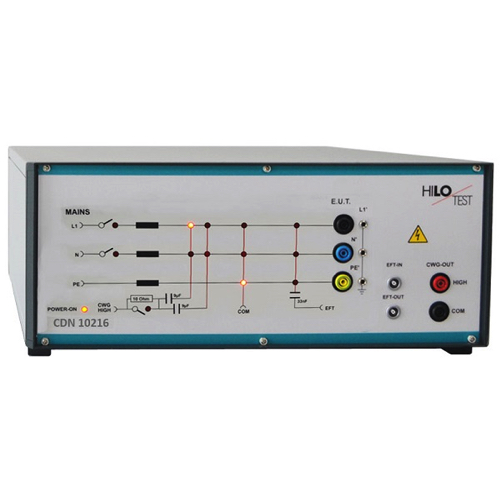 Coupling mode, selectable, for the surge generator: line to line via 18 µF or line to ground 9 µF + 10 Ω; both lines to ground via 29 µF+10 Ω