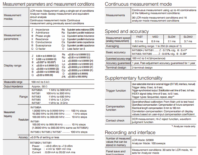 Measurement range L : 0.0053 nH to 0.795 mH