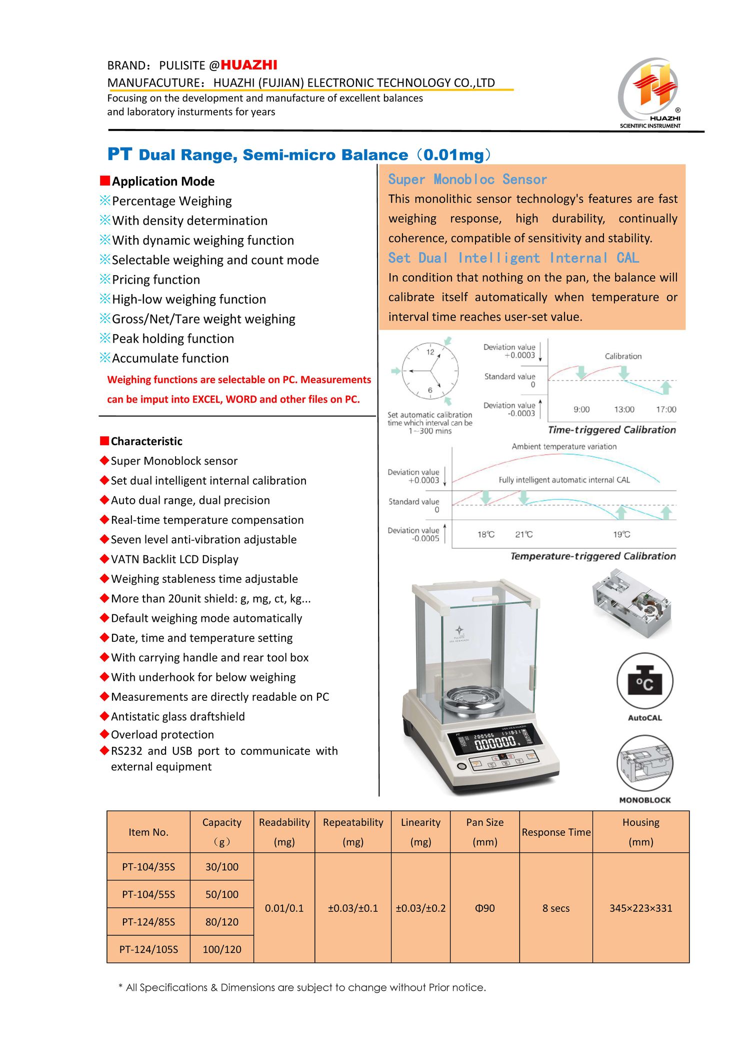 HUAZHI PT-124/85S Semi-micro Balance (80/120g, 0.01/0.1mg) | EMINKH.COM