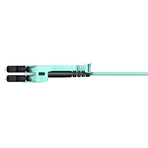 Description/Function: Duplex Patch Cord, LC Uniboot Push-Pull XD to LC Uniboot Push-Pull XD, Multimode, Duplex Round 2.1 mm Dia, Turquoise Color, OM3 Bend Optimized