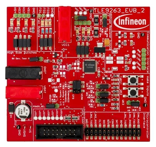 Infineon MIDRANGESBCV33BOARDTOBO1 Power Management Specialized This demo board enables device evaluation of the Mid-Range SBC product family