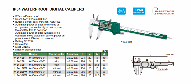INSIZE 1104-150W IP54 Waterproof Digital Caliper (0-150mm/0-6") | EMINKH.COM