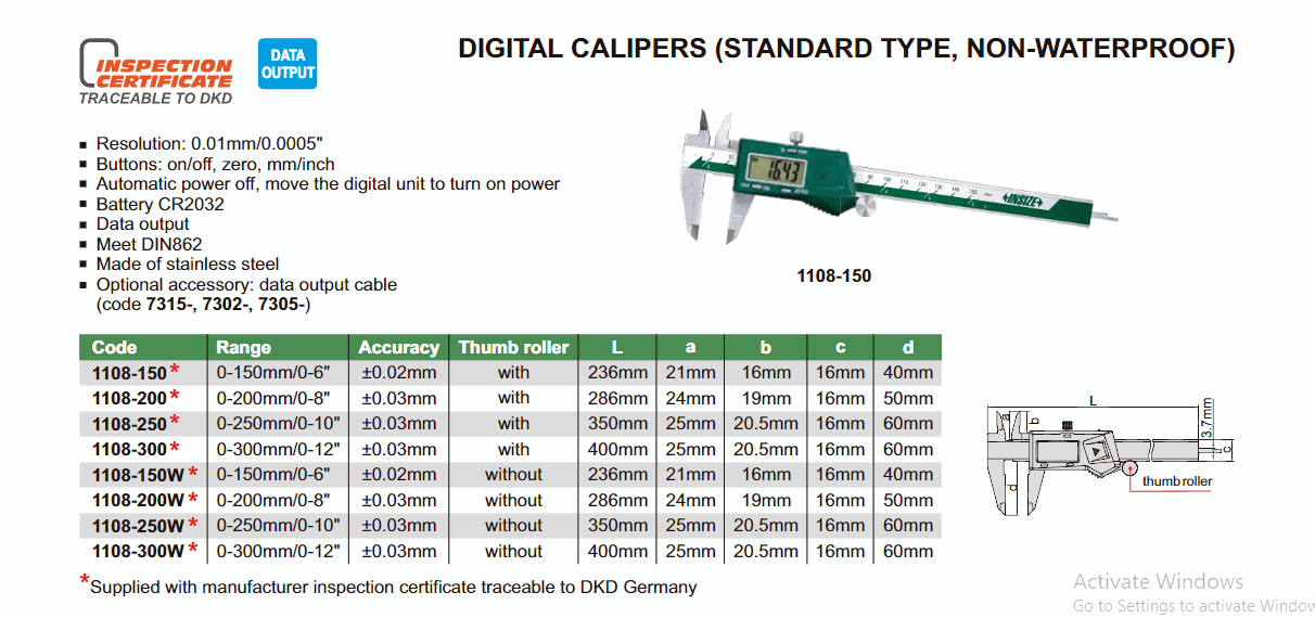 INSIZE 1108-250 Digital Caliper (0~250mm; standard model) | EMINKH.COM