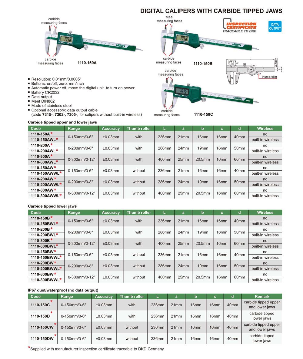 INSIZE 1110-150C Digital Caliper With Carbide Tipped Jaws (0-150mm/0-6”; With thumb roller) | EMINKH.COM