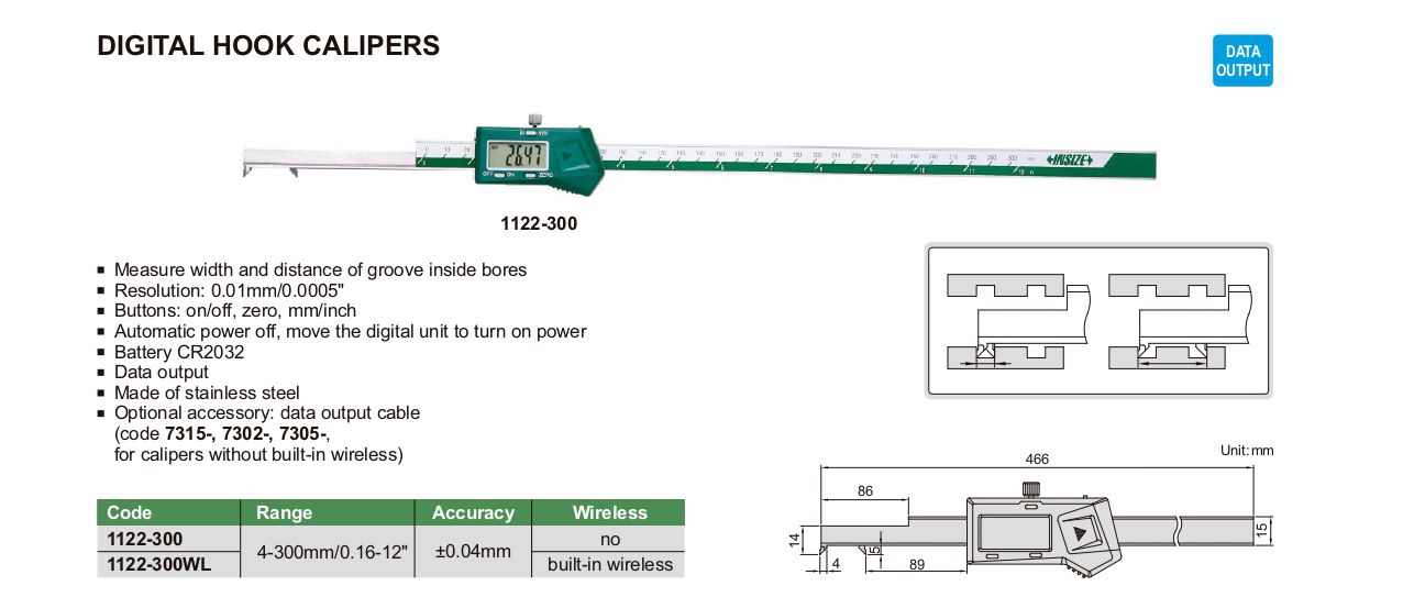 INSIZE 1122-300AWL Digital Hook Caliper (4-300mm/0.16-12") | EMINKH.COM