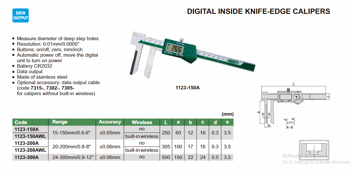 INSIZE 1123-150A Digital Inside Knife-Edge Caliper (15~150mm; knife edge type) | EMINKH.COM