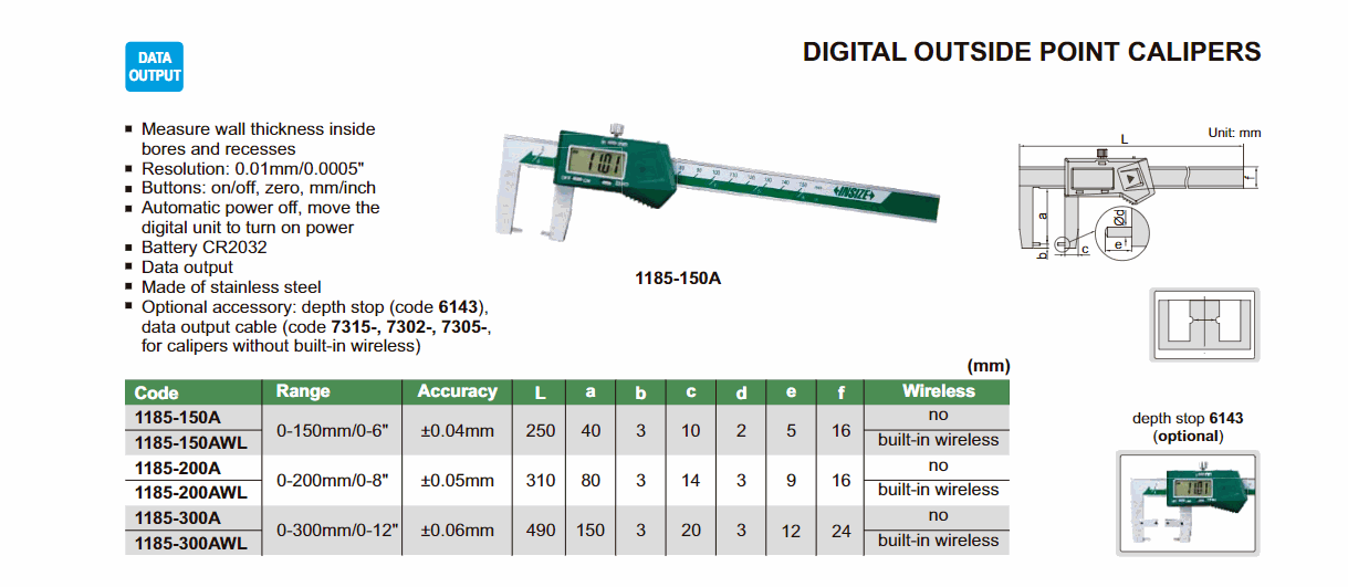 INSIZE 1185-200A Digital Outside Point Caliper (0-200mm/0-8") | EMINKH.COM