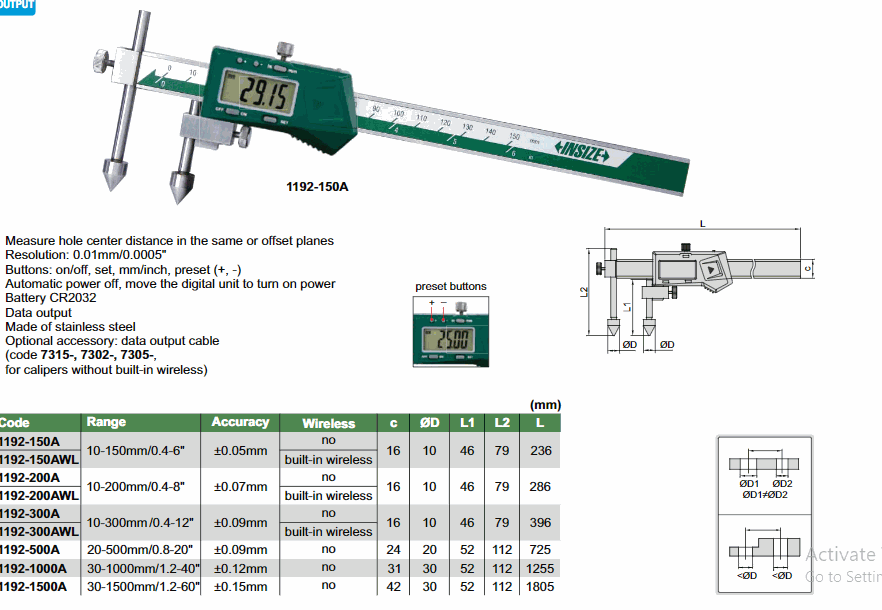 INSIZE 1192-500A Digital Offset Centerline Caliper (20~500mm) | EMINKH.COM