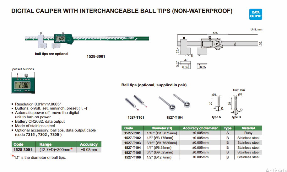 INSIZE 1528-3001 Digital Caliper With Interchangeable Ball Tip ((12.7+D)~300mm) | EMINKH.COM