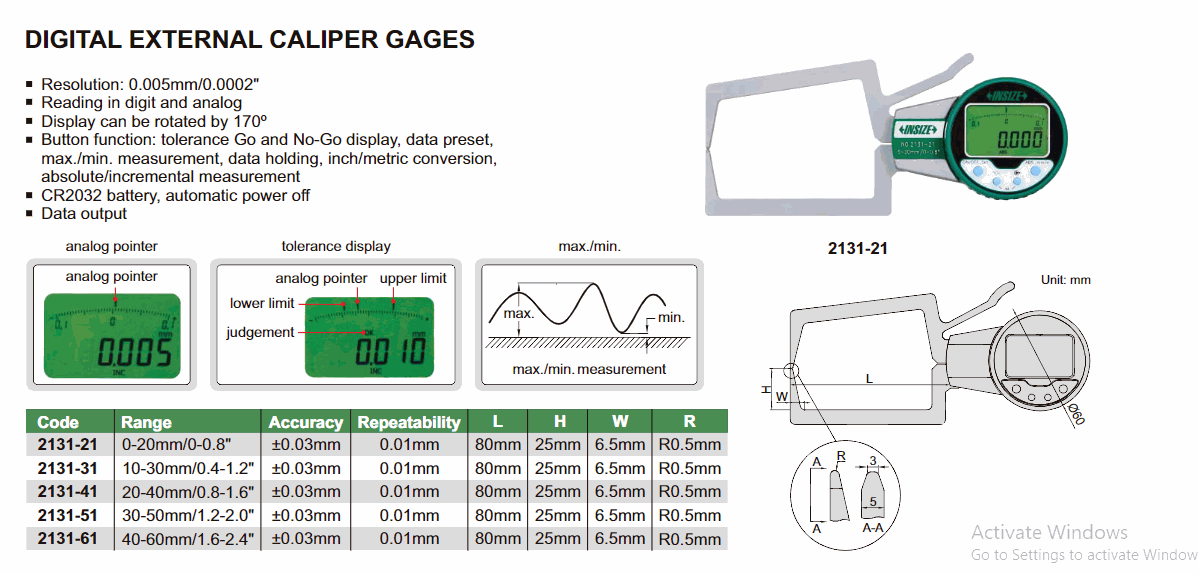 INSIZE 2131-41 Digital Outside Caliper Gage (20-40mm/0.8-1.6") | EMINKH.COM