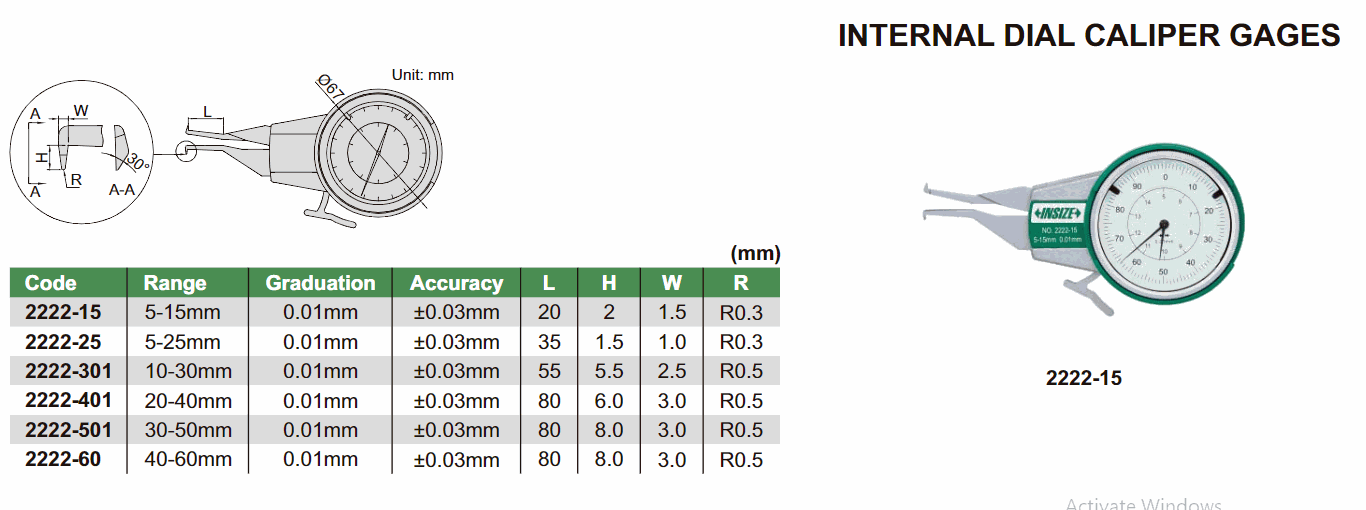 INSIZE 2222-15 Internal Dial Caliper Gage (5-15mm) | EMINKH.COM