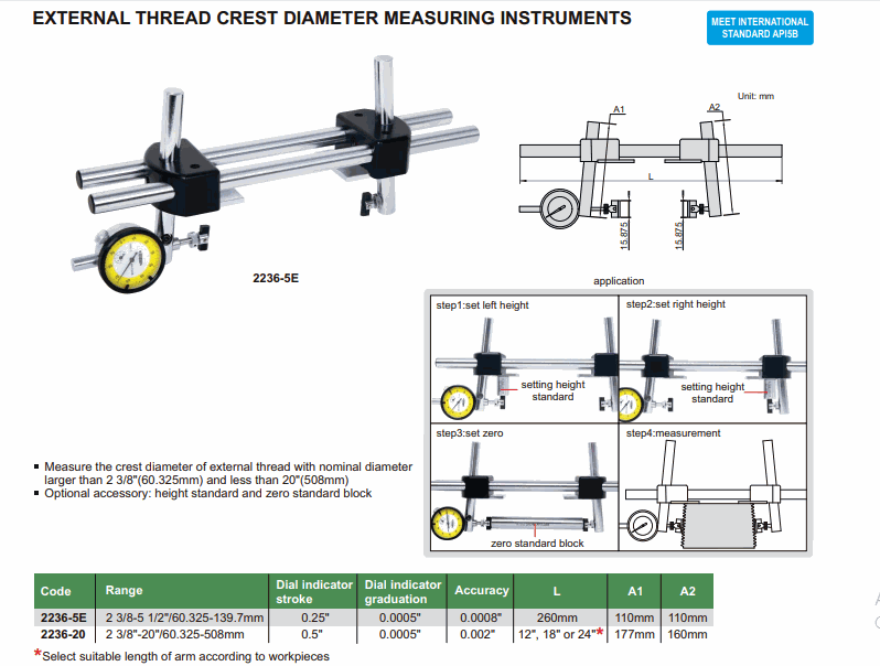 INSIZE 2236-5E External Thread Crest Diameter Measuring Instrument (2 3/8-5 1/2“ / 60.325-139.7mm; 0.0005”) | EMINKH.COM
