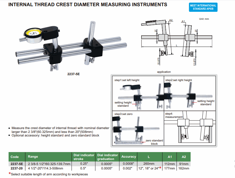 INSIZE 2237-5 Internal Thread Crest Diameter Measuring Instrument (2 3/8-5 1/2“ / 60.325-139.7mm; 0.02mm) | EMINKH.COM