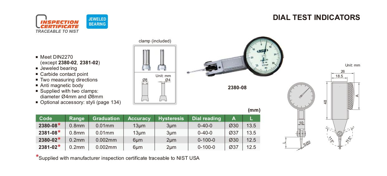 INSIZE 2380-08 Dial test indicator (0-0.8mm/0.01) | EMINKH.COM