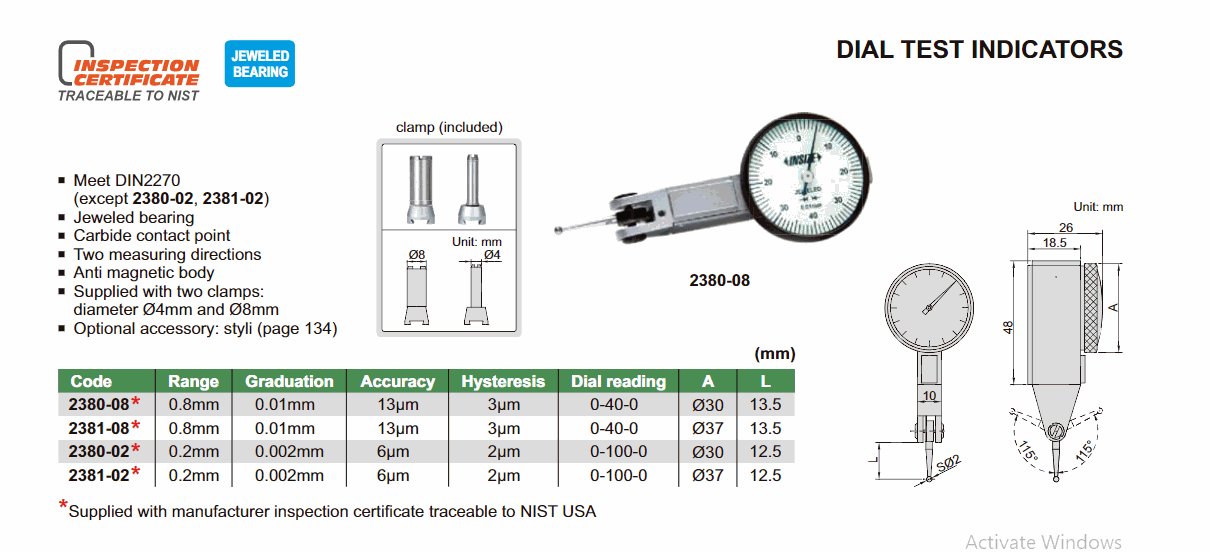 INSIZE 2381-02 Dial Test Indicator (0.2mm; 0.002mm) | EMINKH.COM