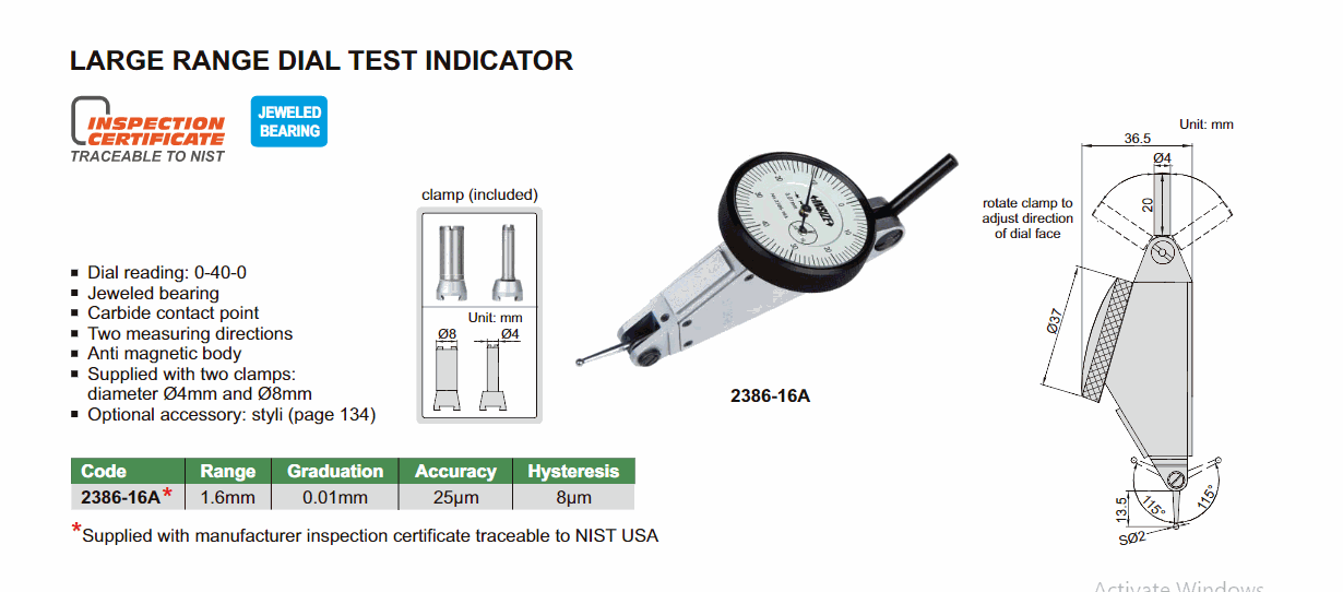 INSIZE 2386-16A Large Range Dial Test Indicator (1.6mm; 0.01mm) | EMINKH.COM