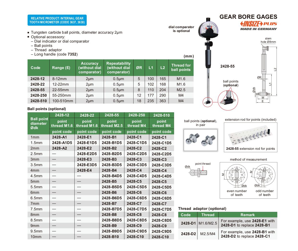 INSIZE 2428-55 Gear Bore Gage (22-55mm) | EMINKH.COM