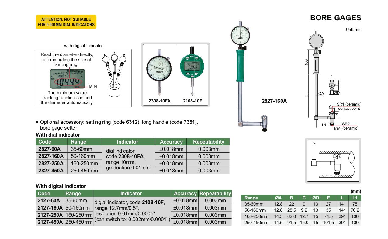 INSIZE 2827-250A Bore Gage (160-250mm) | EMINKH.COM
