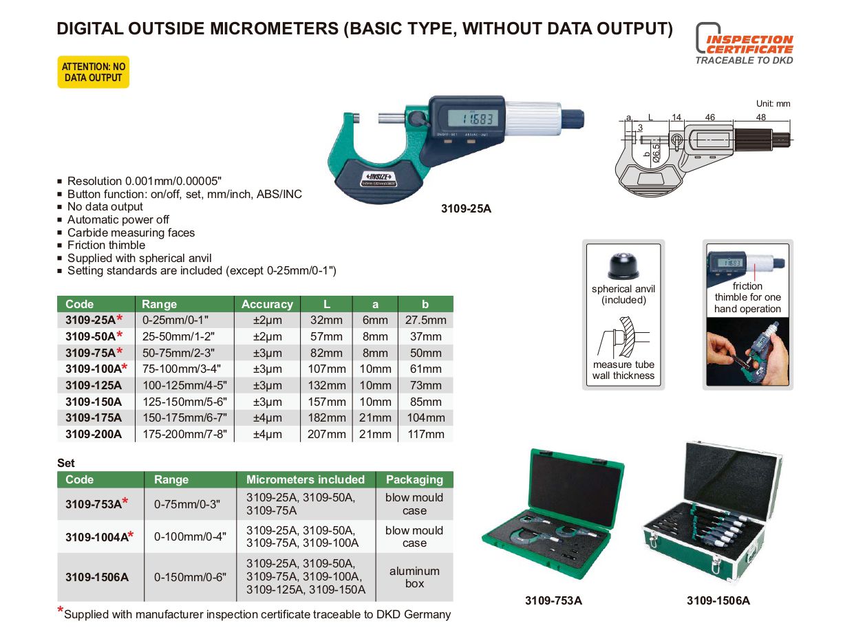 INSIZE 3109-100A Outside Digimatic Micrometer (75-100mm/0.001) | EMINKH.COM
