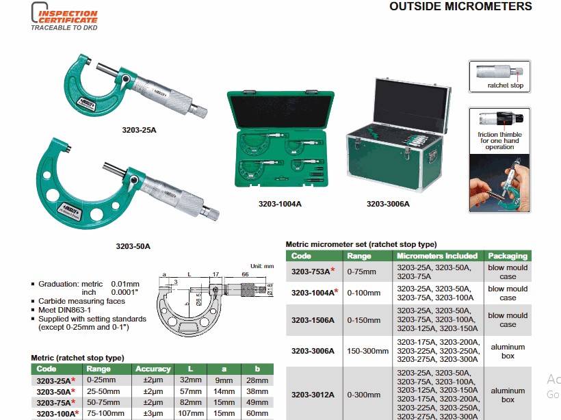 INSIZE 3203-6A Outside Micrometer (5-6"; 0.0001") | EMINKH.COM
