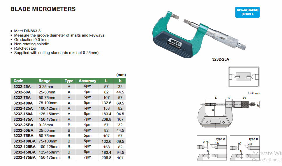 INSIZE 3232-50BA Blade Micrometer (25-50mm; 4µm) | EMINKH.COM