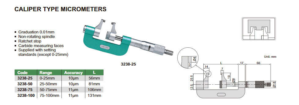 INSIZE 3238-100 Caliper Type Micrometer (75-100mm; 0.01mm) | EMINKH.COM