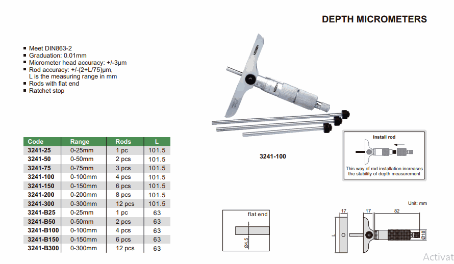 INSIZE 3241-B300 Depth Micrometer (0-300mm; 0.01mm) | EMINKH.COM