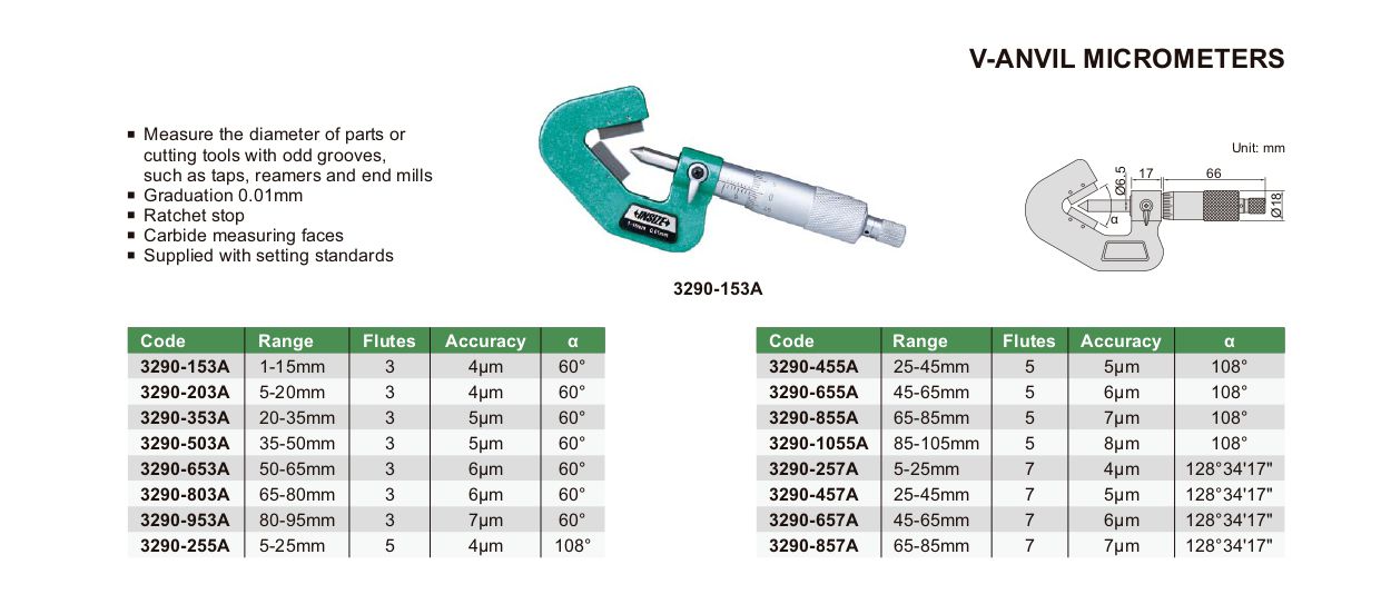 INSIZE 3290-203A V-anvil Micrometer (5-20mm) | EMINKH.COM
