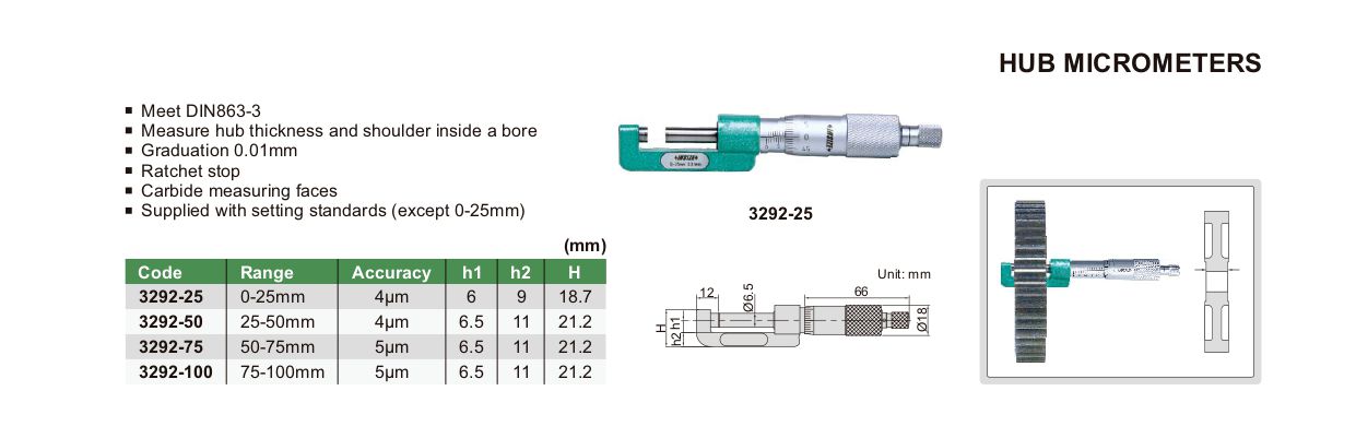 INSIZE 3292-75 Hub Micrometer (50-75mm; 0.01mm) | EMINKH.COM