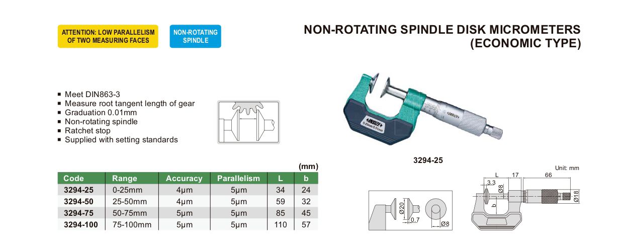 INSIZE 3294-100 Non-Rotating Spindle Disk Micrometer (75-100mm) | EMINKH.COM