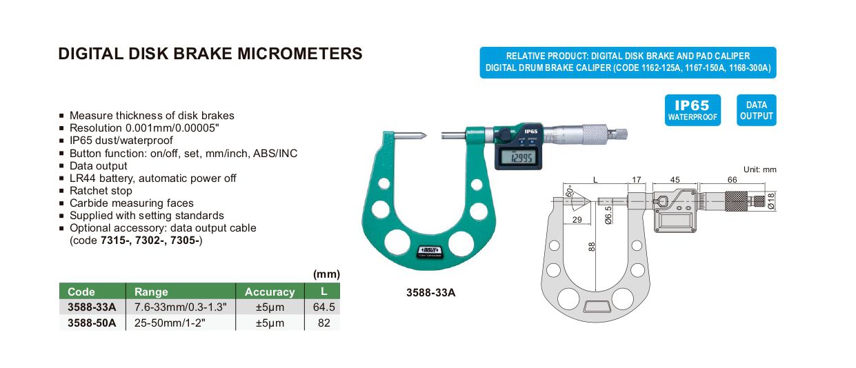 INSIZE 3588-33A Digital Disk Brake Micrometer (7.6-33mm/0.3-1.3") | EMINKH.COM
