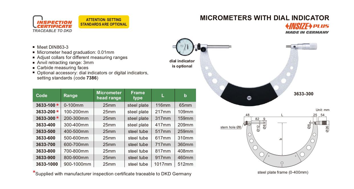 INSIZE 3633-600 Micrometer With Dial Indicator (500-600mm) | EMINKH.COM