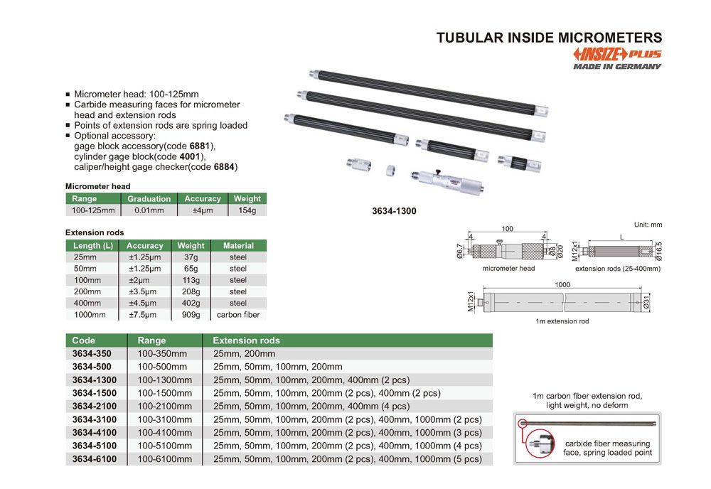 INSIZE 3634-500 Tubular Inside Micrometer (100-500mm) | EMINKH.COM