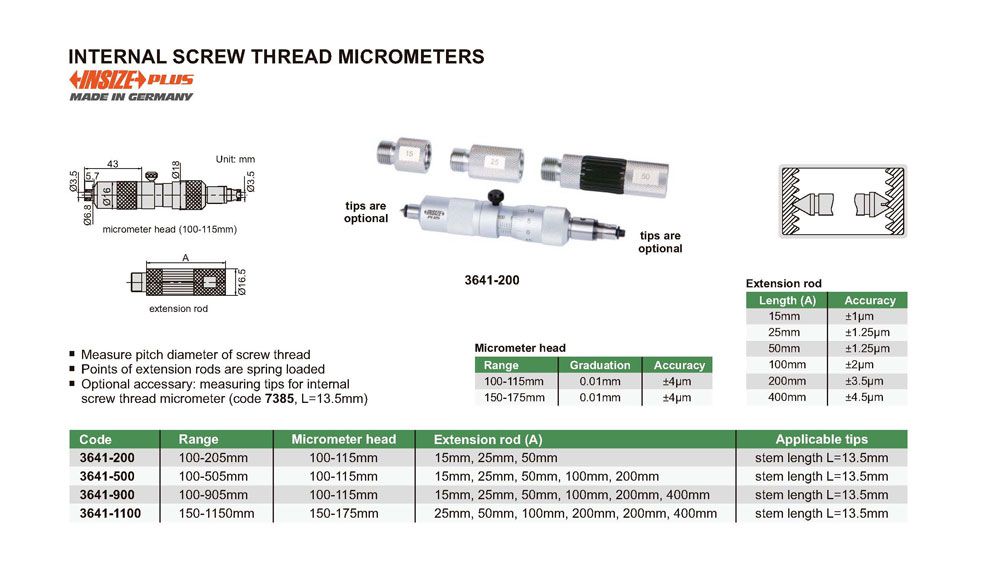 INSIZE 3641-200 Internal Screw Thread Micrometer (100-205mm) | EMINKH.COM