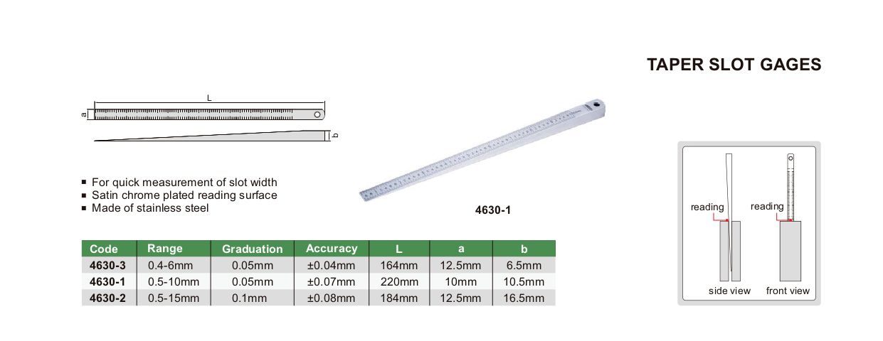 INSIZE 4630-2 Taper Slot Gage (0.5-15mm) | EMINKH.COM