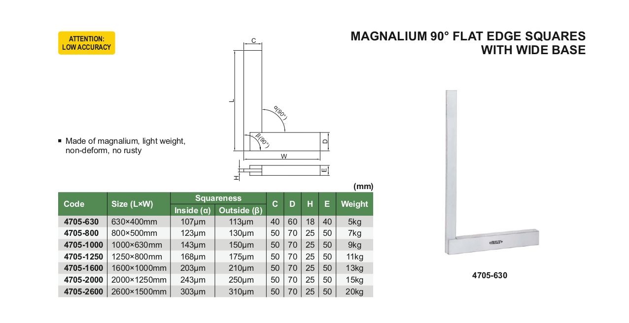 INSIZE 4705-2000 Magnalium 90° Flat Edge Squares With Wide Base (2000x1250mm) | EMINKH.COM