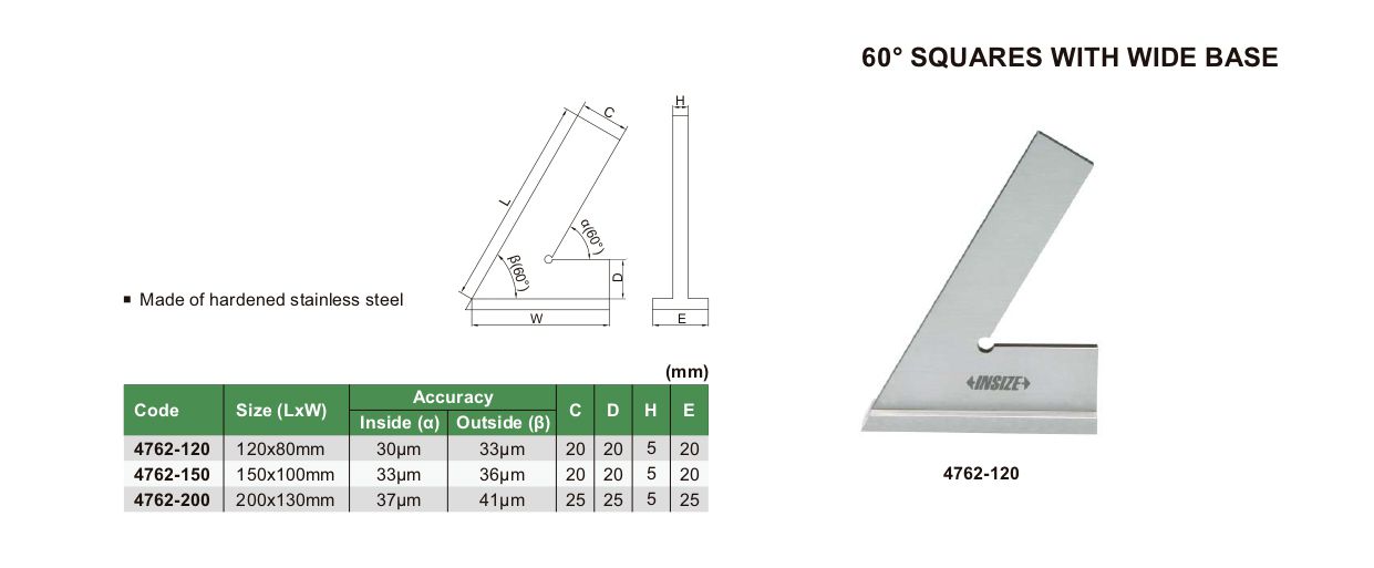 INSIZE 4762-200 60° Square With Wide Base (60°; 200x130mm) | EMINKH.COM