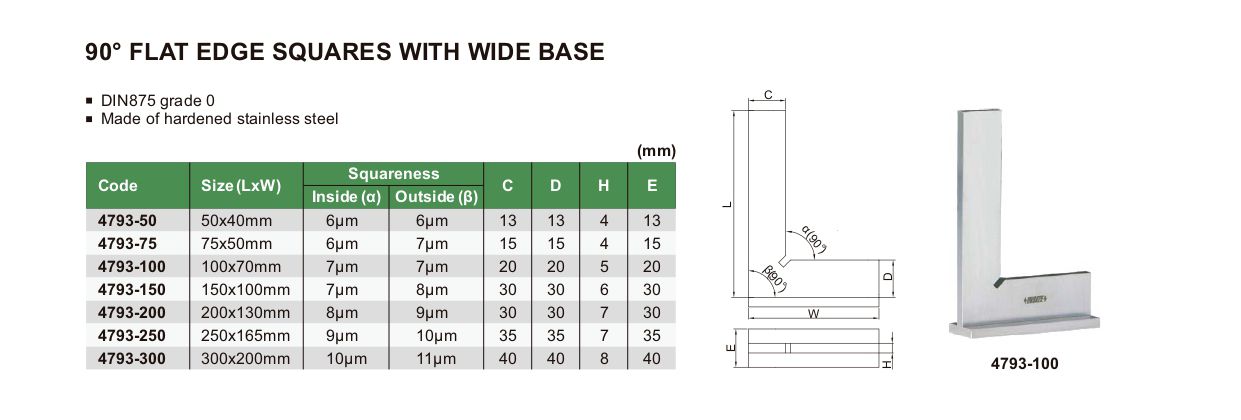 INSIZE 4793-75 90° Flat Edge Square With Wide Base (75x50mm) | EMINKH.COM
