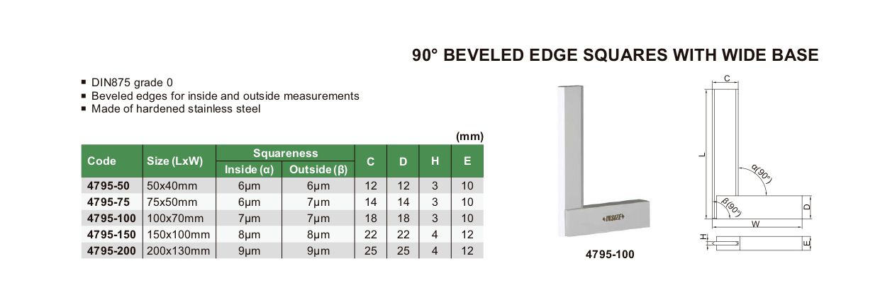 INSIZE 4795-100 90° Beveled Edge Square With Wide Base (100x70mm) | EMINKH.COM
