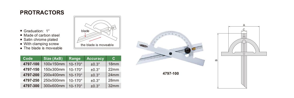 INSIZE 4797-200 Protractor (10-170°, 200x400mm) | EMINKH.COM