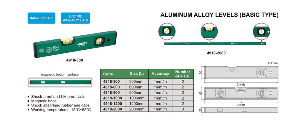 INSIZE 4918-300 Aluminum Alloy Level (300mm;1mm/m) | EMINKH.COM
