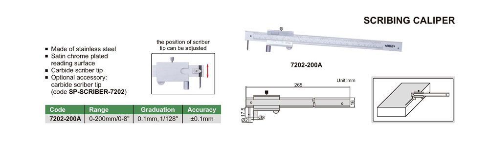 INSIZE 7202-200A Scribing Caliper (0-200mm/0-8"; 0.1mmm; 1/128"; ±0.1mm) | EMINKH.COM